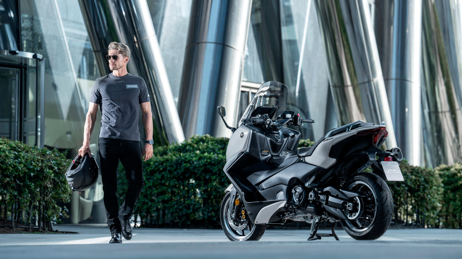 Its powerful 560cc EURO5+ engine and refined automatic transmission make this Yamaha’s fastest and smoothest Sport Scooter. The motorcycle-type aluminium chassis and adjustable suspension provide precision handling. And for supreme comfort, the TMAX Tech MAX comes with a luxury heated seat, heated grips and an electronically adjustable screen.